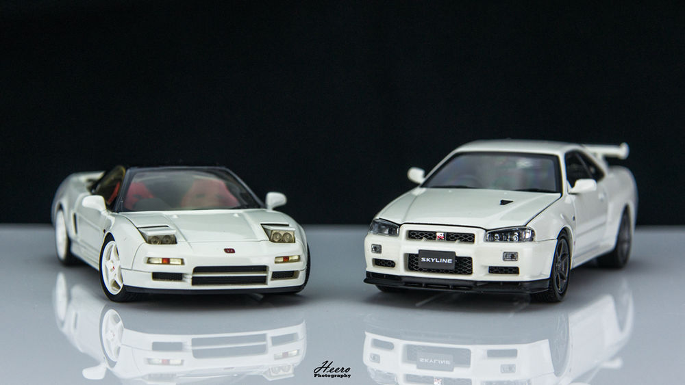 43下 NSX R championship white版的选择也不少。。。ky做的就挺实在。HPI版已经绝版,价格水涨船高。在原价位下是不错的选择。 不过仔细比较下,分色边缘的处理上,即便是HPI也不如autorbit这版做的干净整洁。。