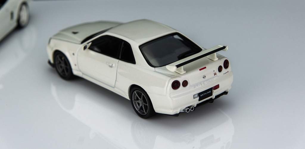 虽然最近一直在和朋友讨教。。不过对日系车还是有很多内容需要补。。。模型本身由于是树脂车身,白色漆涂装很平滑,没有spark的那种杂质。。前轮带有转向功能,幅度也相当不错。