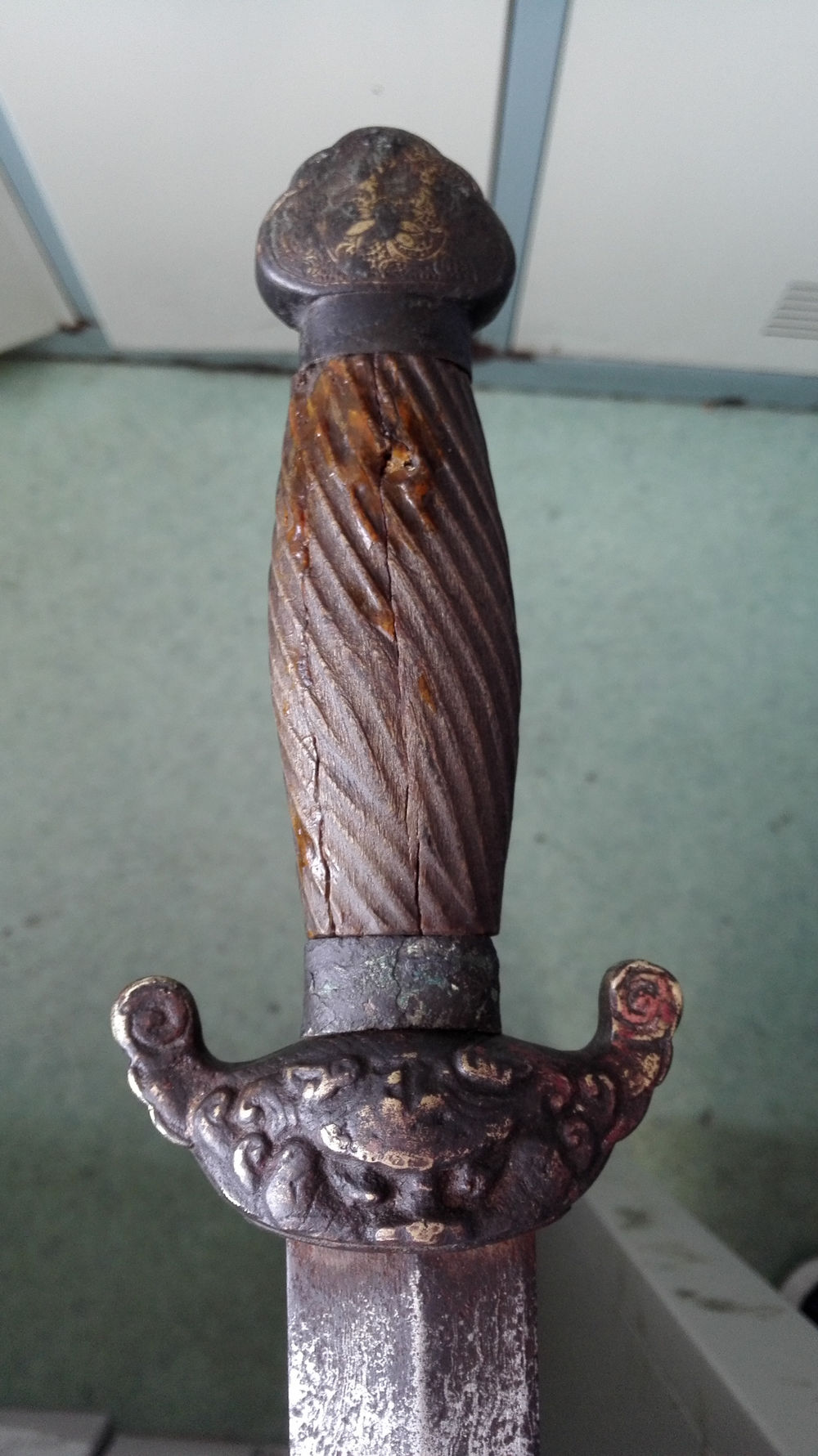 好!卷草阴刻龙泉装具,品不错。剑是旋焊啊?