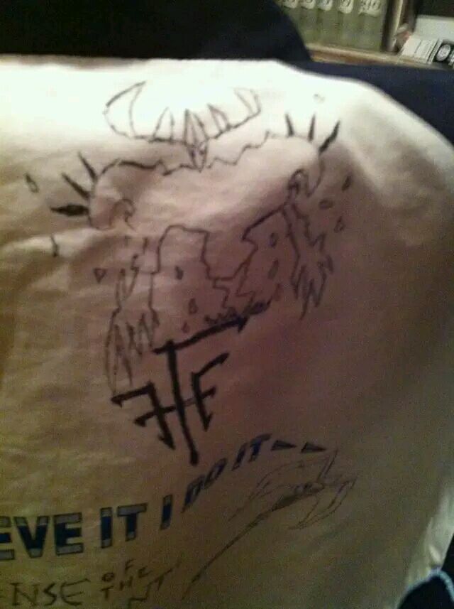 我先自爆——我为了张扬个性,在校服上涂鸦,花了很多东西,当然有FFF团的标志(但是手残),然后。。。就没有然后了