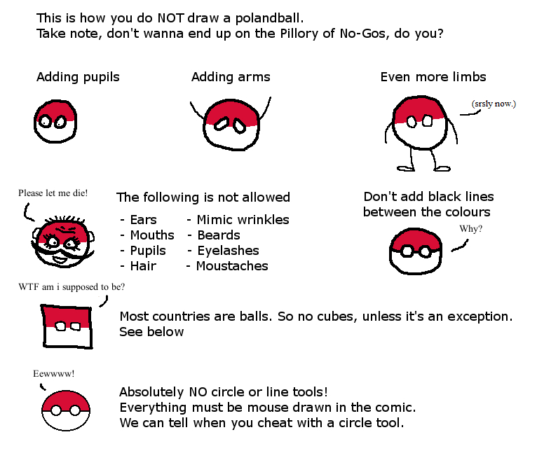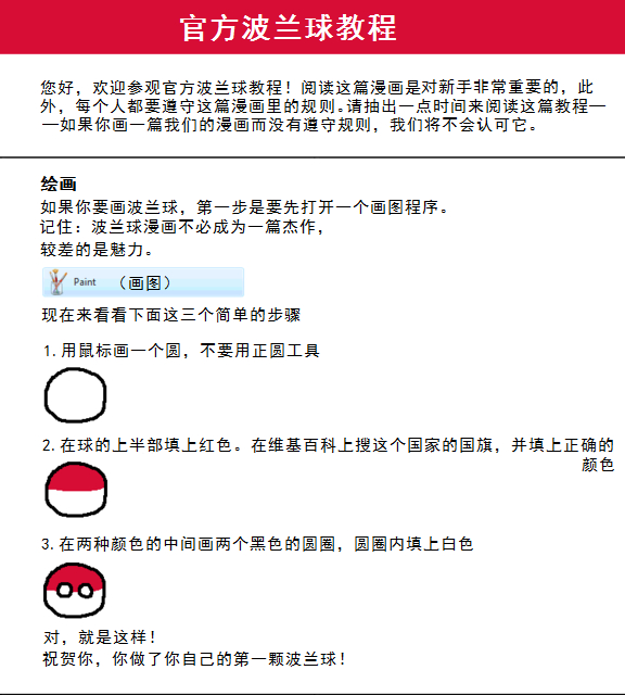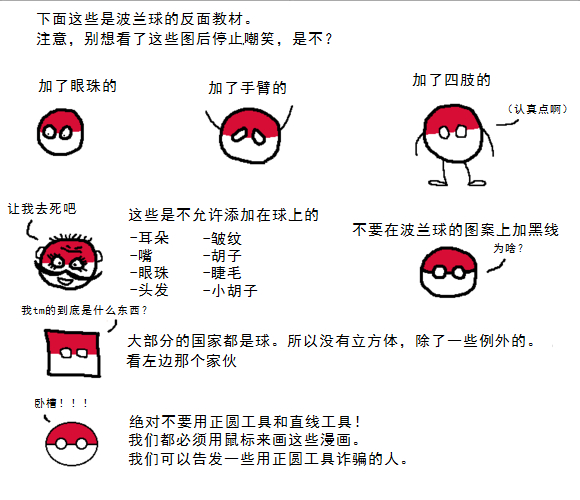 ② Polandball吧允许做什么? What is allowed to do in PB? 1、 发布优秀的原创波兰球作品 Post your own quality original polandball comics 在po吧发布的原创波兰球作品必须符合下述说明的要求(转载自波兰球Reddit),否则将遭到删除。 Every polandball comics posted in PB shouldperfectly meet the requirements below from Polandball Reddit,or will be deletedat once.