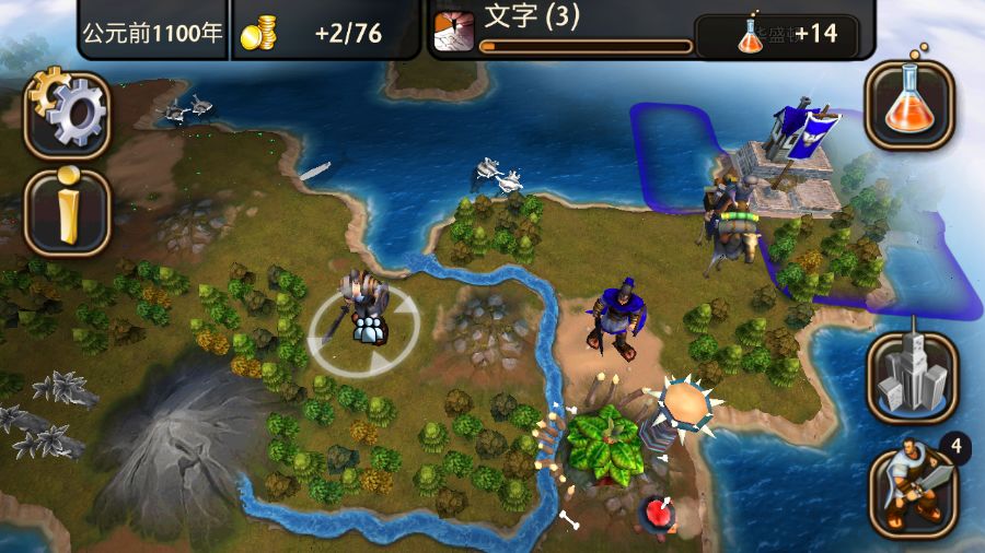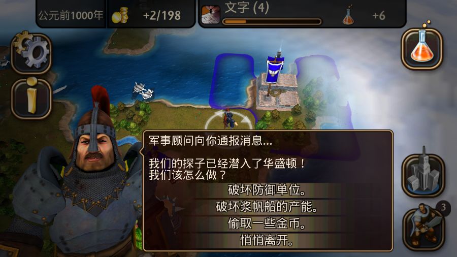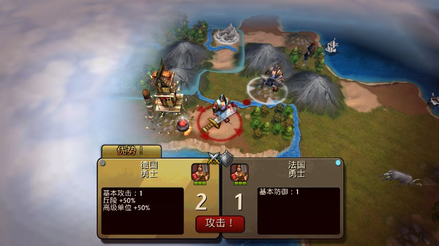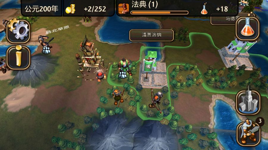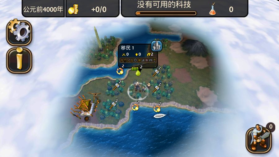 勇士突然升级让我有点郁闷,因为我已经生产了两个勇士,还没来得及组成军队。 现在只能把他们都放新城里去待着了。