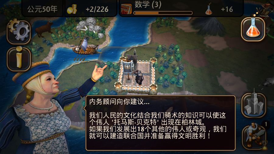 内务顾问的建议。选择50金币,容易完成,并且奖励1人口,比其他奖励都好