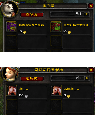 声望:需要声望等级达标才可购买的坐骑(极少数不需要购买)