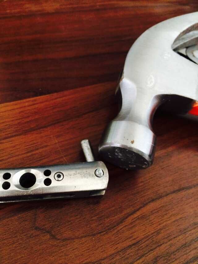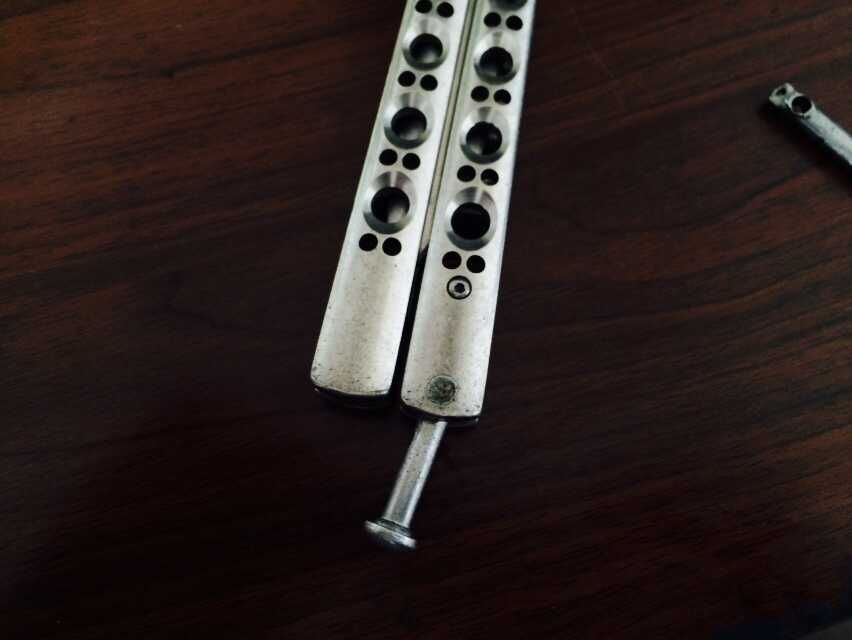 通常螺丝结构的蝴蝶刀都需要通过自己修理来延长蝴蝶刀的使用时间,然而尾扣的材料除了厂家,市面上并没有卖的。我决定自己装一回逼。 修好后的刀没有弹簧不能锁住,但是不会影响使用。很多朋友觉得不能锁住锁扣的意义就没有了,但是习惯了刀的重心,我也不想改过来。