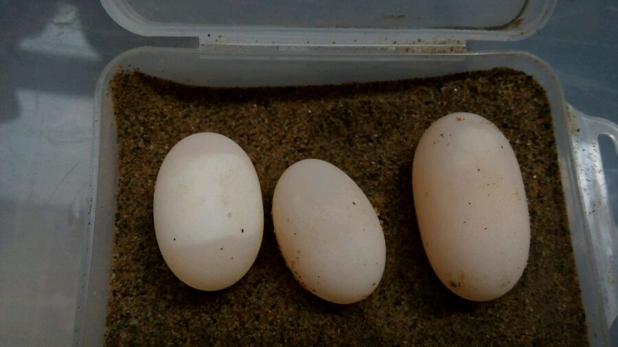 草龟,7月6日生的蛋,7月13日看的时候还没有精斑,本来要放弃了。刚刚(7月18日 )一看,左边这颗蛋是不是有精斑了?白色斑块绕着蛋中间大半圈,蛋底部没有白斑,请问这颗蛋是不是正常受精了?能孵化出来么?多谢