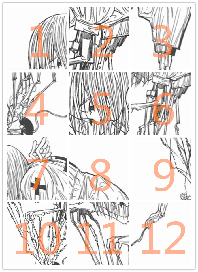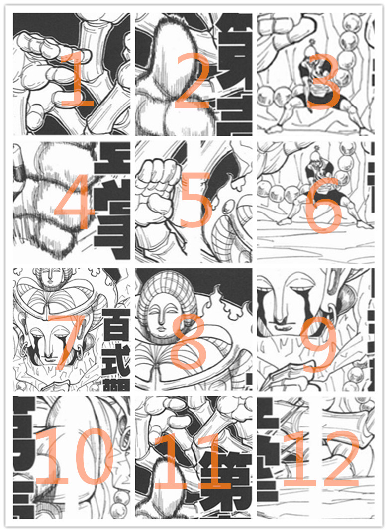 题目以猎人漫画为准。主办方将截取漫画中一场景,并切割成不同的模块,吧友需要从中挑选出所有可以拼成一张完整图的模块。