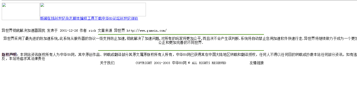2000年9月的,这是Chinauo第二个使用的网站页面,我接触UO的时候Chinauo用的网站比这个还要老一个版本