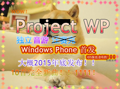 Project WP是一款WindowsPhone平台的非下落式,基本玩法跟某偶X大师撞车的音游,目前还在开发阶段,预计年底推出。首发版本将会收录大陆乐师Zris,废铁小拇指,希望索任合资的乐曲!