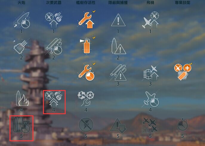 如果是美系的话第一排可以不点灯泡点防空效率 而第四排也换成防空范围 鱼雷警戒可以不要 把点数加给开炮预警 第五排如果打算点的话隐蔽和这个选哪个应该也都行