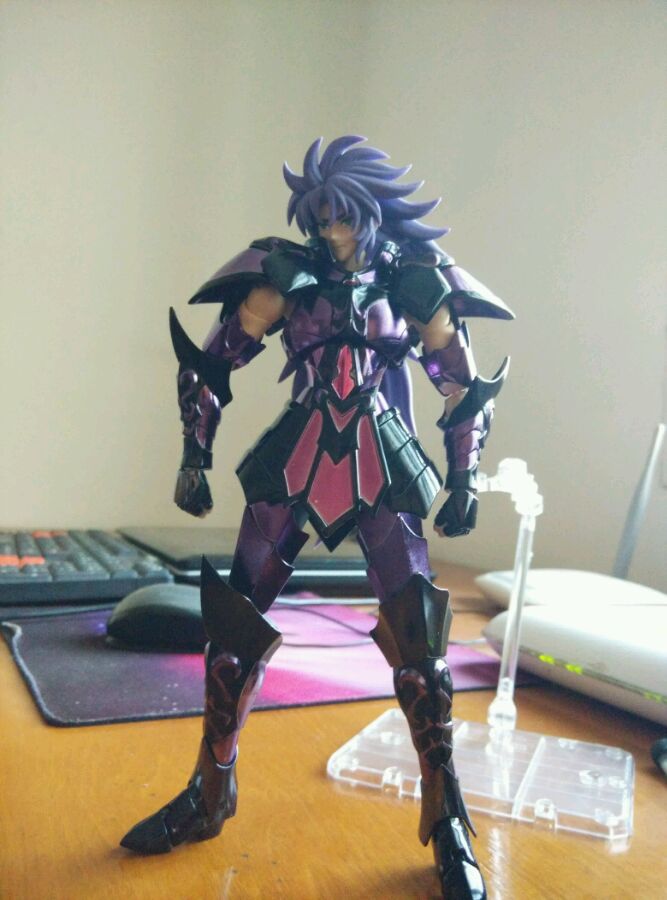 在买之前还是做了功课的,知道冥衣撒加有顺腿和,素体做工不扎实的问题。拿到手上之后感觉瞬腿还是可以接受,毕竟我还是比较喜欢没事摆一摆pose,只拿来站尸的话不如买个不能动的手办,何必买神话?说说素体,我最不满意的就是这个素体。因为之前的神狮子和瞬的素体都非常出色,各种体位轻松驾驭,但是冥衣撒加就不行了,双腿在三十到四十度这个位置上非常松,容易劈腿,并且摆一些大动作非常不稳定,感觉这一点非常闹心。头雕方面,虽然第一头雕感觉是没有漫画里忧郁犀利的眼神,但是在俯拍这个角度还是可以得到不错的效果,闭眼大吼都没有太大问题。总的来说头雕方面并不出彩,但是也没有到影响观赏的地步。