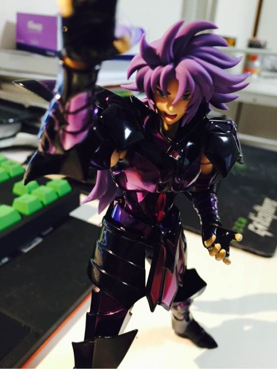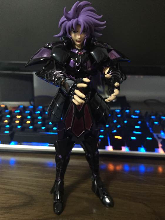 说完不好,来说优点。我觉得冥双子最好的一点就是这件冥衣,这个颜色和造型颇有一股玄幽通灵的味道。并且在装配上也没有什么容易掉件的地方,把玩起来非常顺手,而且分量十足,覆盖率极高!圣衣形态也非常有造型感,非常暗合双子亦正亦邪的设定。
