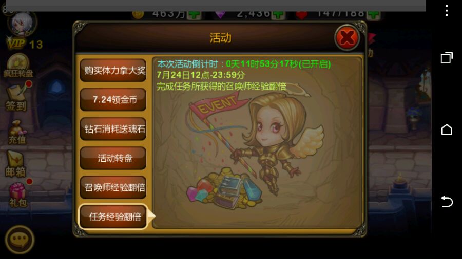 自己笨死,每次活动都有时间,你看时间然后下次要更新了就留砖石,留任务,更新后在看。。