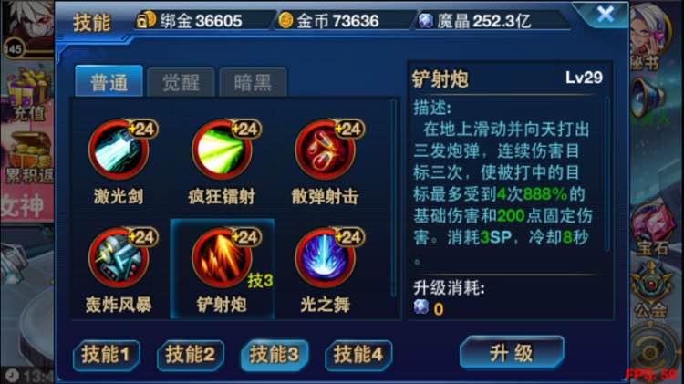 首先技能方面,楼主选择的是普通铲射炮与全部觉醒技能,舍弃暗黑觉醒技能,如图所示。为什么呢?