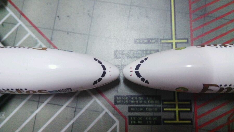 GJ的机头相较于上一代模具变化不大,对比真机可发现,GJ的机头前部略长,鸭嘴头的毛病还在,而PH外形则与真机更为相近