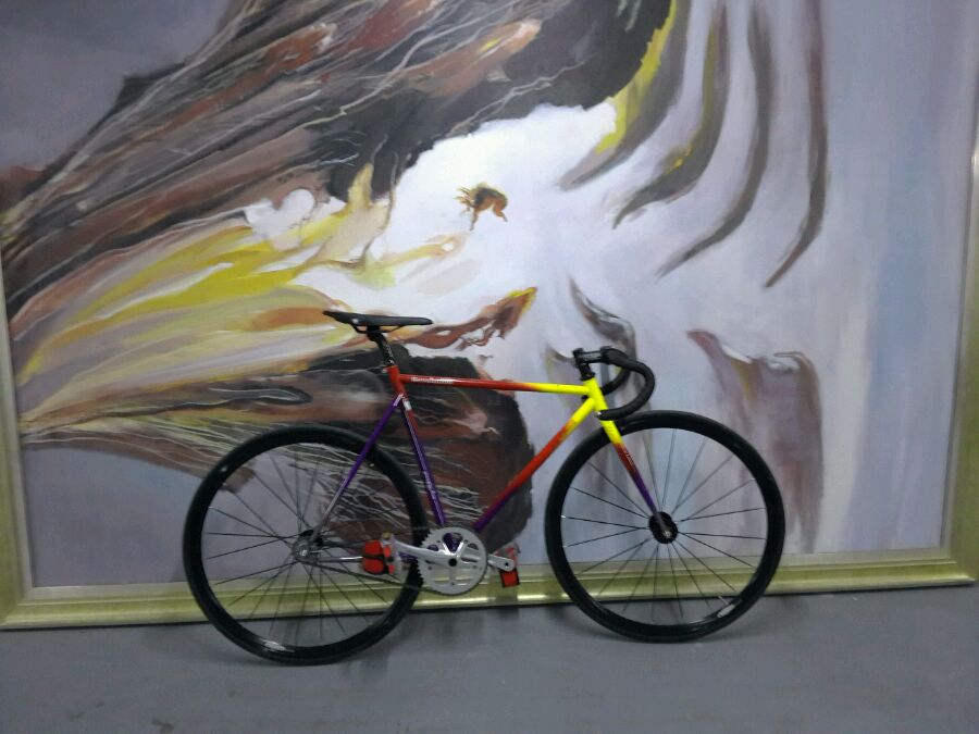 骑死飞多年已经有点厌倦了,虽然能做流畅的skid但是太伤膝盖关节韧带部分了。现决定来一次大改造,改一台单速的公路自行车。自己从网上淘了点配件,打算自己动手。先看看现在骑的固齿。