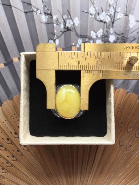 925银饕餮纹戒托,鸡油黄蜜蜡戒面,自己纯手工磨的,据说这个戒托的花纹非常适合牌友