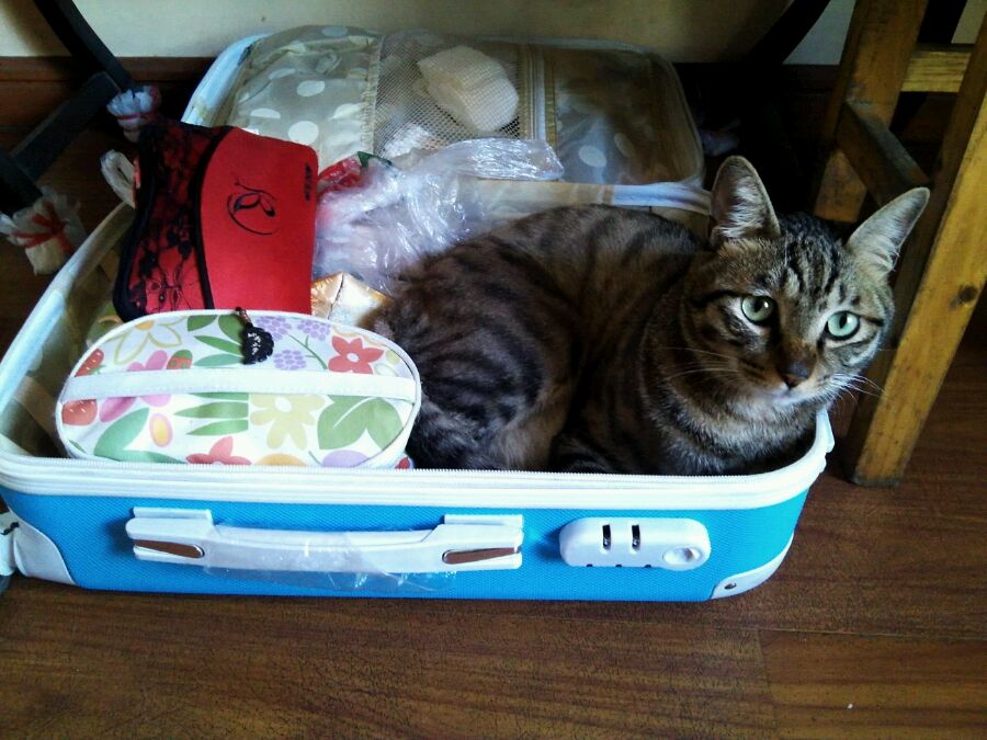 我的行李箱,旅行包,手提包。它都喜欢在里面玩。