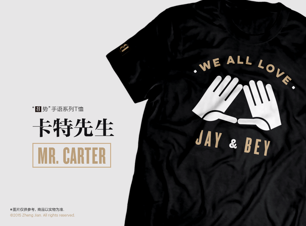 其实一直也想设计一些粉丝的衣服,但又不想在中国这种山寨风的情况下模仿官方的“喊话式设计”,所以根据自己多年“看片”经验,总结出了各种Bey手势。