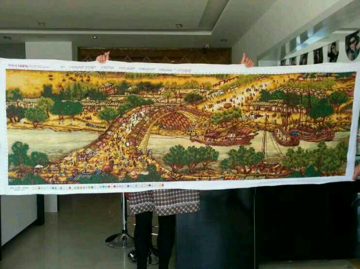 有人买十字绣吗?妈妈秀的,纯手工。还有鞋垫。清明上河图,两米五乘一米,三万。可小刀