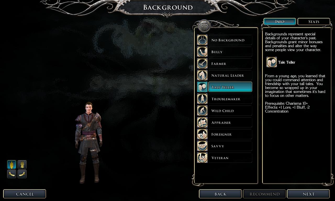 但是, 我要RPG,因为没有施法者等级,所以专注对我完全没影响,所以我要选对人物完全无负面效果的背景,选故事大王。