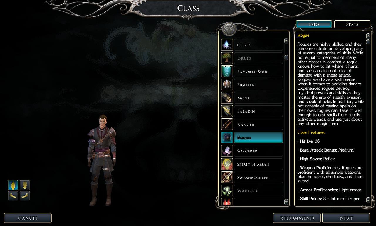 贼的基础职业。属性如图。因为要兼职决斗家,而专长不是那么紧,就选的轻足半身人,3围多1,没选强心半身人。