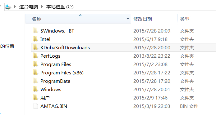 预定了win10升级的朋友们可以看看c盘里隐藏文件里是否出现$Windows.~BT 就说明自己的机子已经开始在预下载win10了