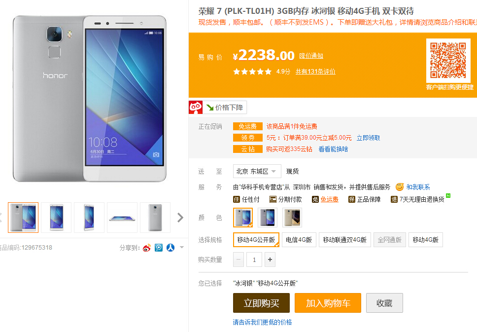 如果抢不到也不打算等下次,直接在苏宁上买现货了。说到这我就发现了一个问题。。为什么苏宁上有着 移动4G版,还有一个移动4G公开版。。因为本人用的是移动卡,所以在商城买的移动版。接下来上图!