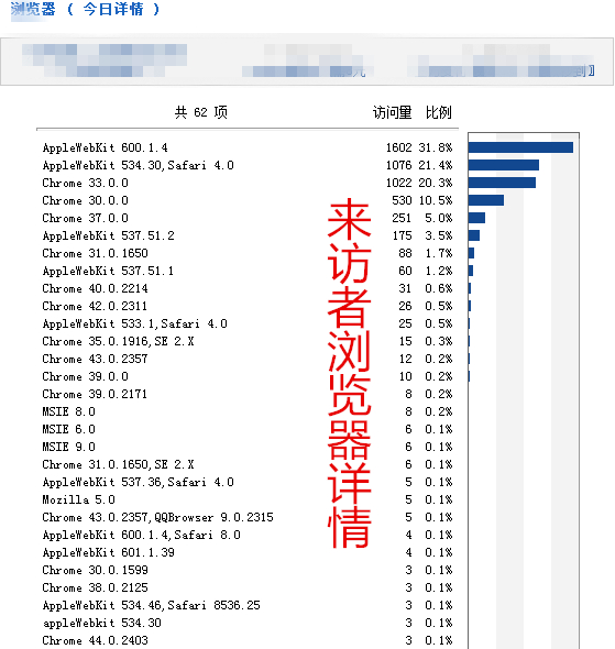 下面这张图,来访者浏览器详情,尼玛applewebkit是什么鬼?