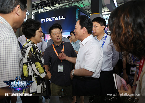 今天(7月30日)是第十三届chinajoy开展的第一天,也是这个夏天上海最火爆的一天。早上9点整,《火瀑》(Firefall)的两位Cosplay的演员缓缓从幕后走进展台,两位Coser一亮相,瞬间吸引了无数参展人员的眼球,这时,恰逢国家新闻出版广电总局副局长、中国音像与数字出版协会理事长孙寿山一行来展台视察,瞬间对两位coser产生了浓厚的兴趣,不但亲切询问了《火瀑》(Firefall)的游戏情况,还打破常规首次与两位Coser进行了“亲密”接触,亲切握手。