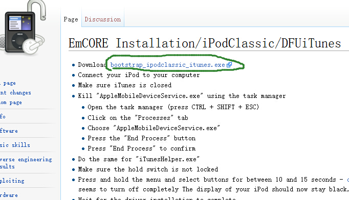 点击正文第一行Download bootstrap_ipodclassic_itunes.exe那个链接,下载bootstrap_ipodclassic_itunes.exe文件,
