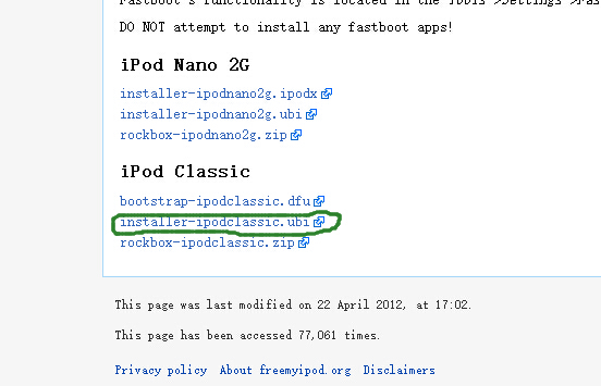 然后在页面底下点击installer-ipodclassic.ubi链接下载installer-ipodclassic.ubi文件,