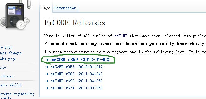 然后再打开http://www.freemyipod.org/wiki/EmCORE_Releases点击emCORE r859(2012-01-02),