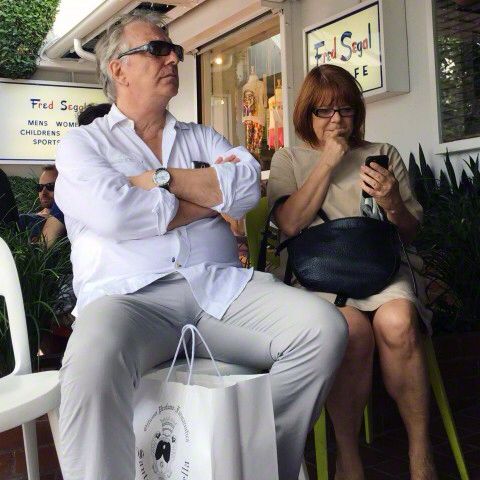 Alan Rickman with wife Rima Horton went shopping in West Hollywood and took a UBER ride.