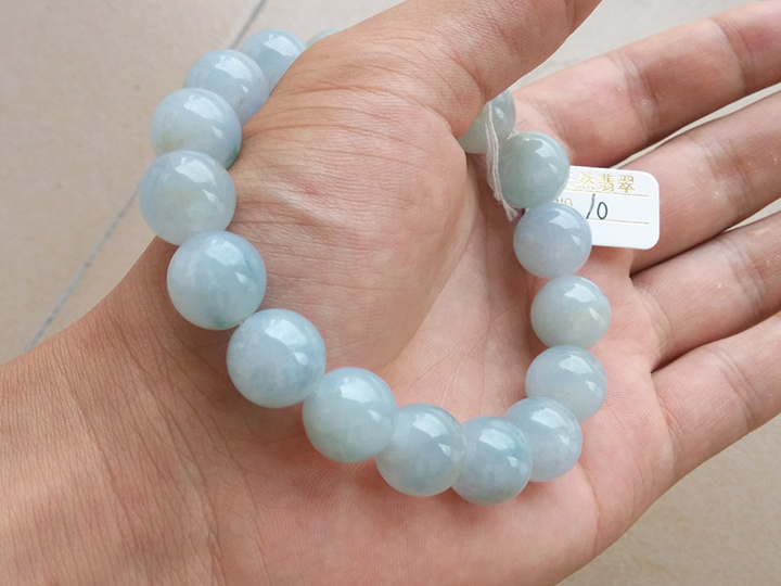 紫罗兰翡翠大珠子13mm 【地板价】980元 【尺寸】直径约12.7mm, 17颗 【描述】淡紫色,图片自然光拍摄,个别珠子有细纹,