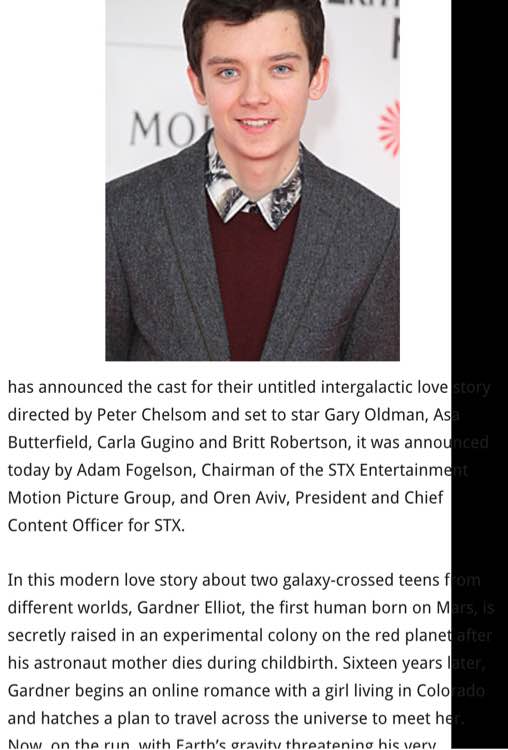 「AsaButterfield」推特更新,新电影大概要开始了