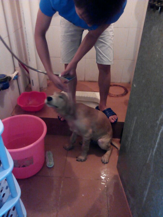 回复 xiaohhxx :我不放盆里他也舔自己身上~