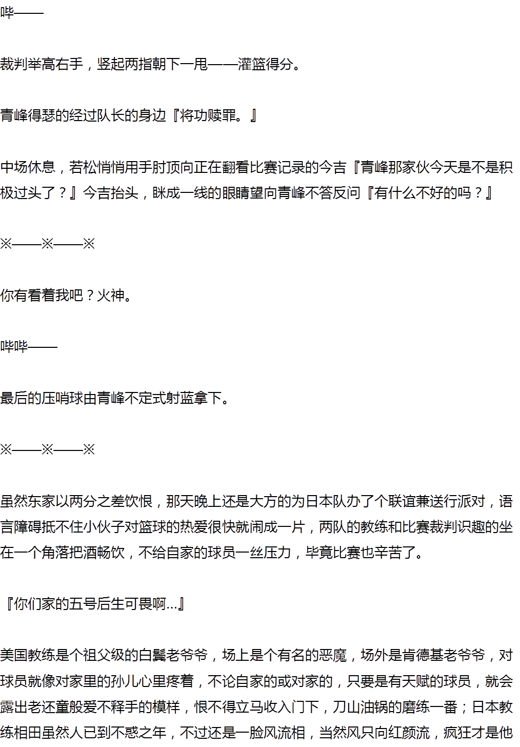 然后阿大,Highest那里我的确没写白,迄今为止,青峰还记得那句话,bring me to the highest。因为火神这句话阿大才追到美国,然后进职业篮球带火神到最高点。所以再次见到火神之前的阿大已经有了这个觉悟,只不过很久之后还是作死扭曲火神的意思就是了www