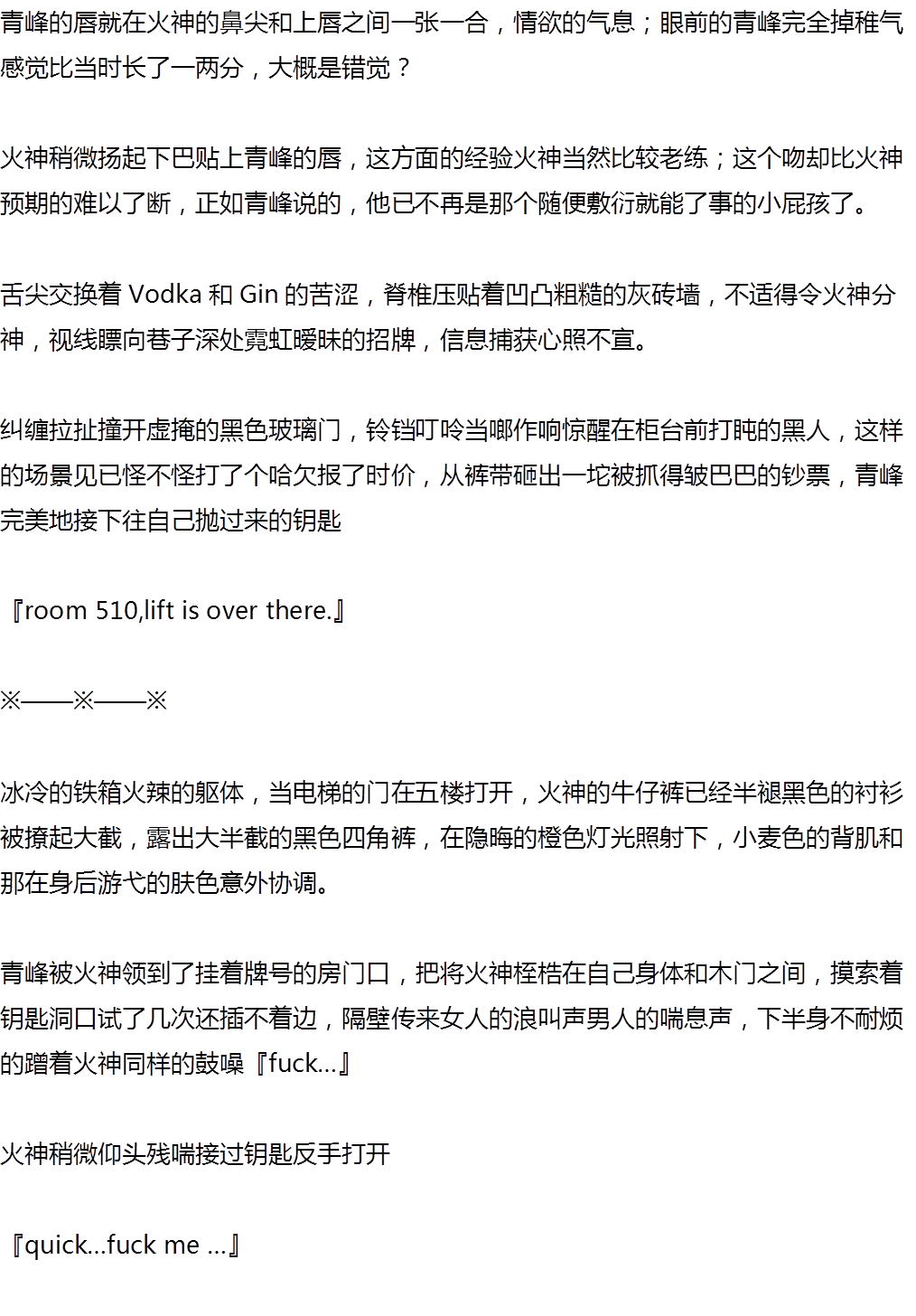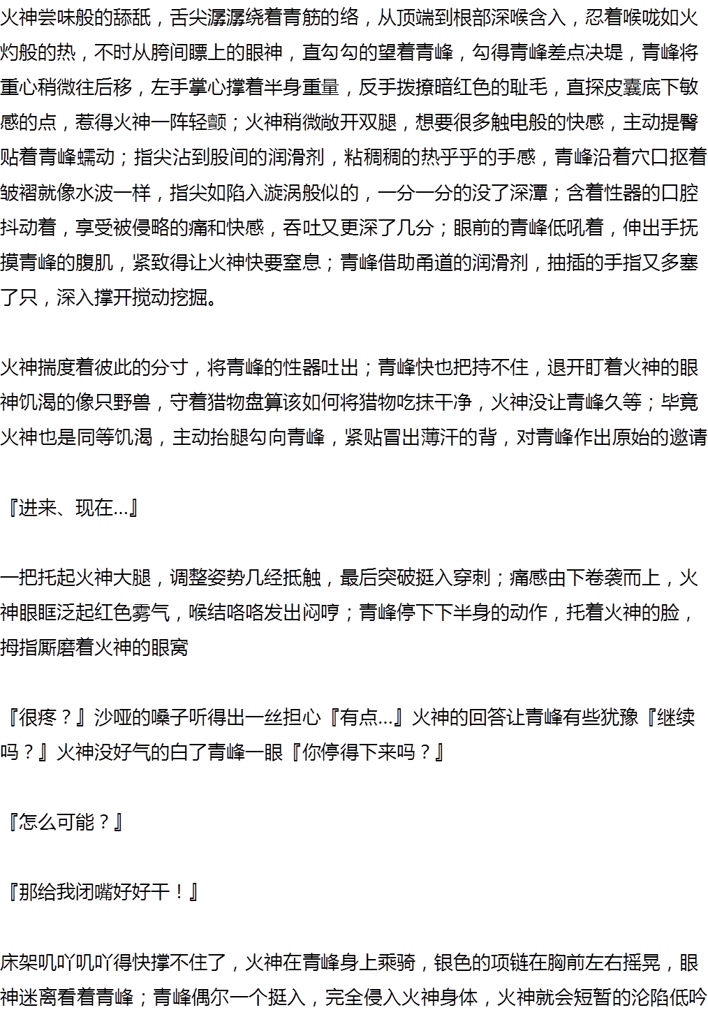 三部,青峰的改变是显而易见的,开始孩子气,青春期中二,后来进入职篮,一开始的不得意,年轻气盛,焦躁,还有后来渐渐成熟,内敛。那个highest理解成高潮也是…很有工口峰的特色!!火神,可能因为年龄设定吧,比较成熟,不过魅力杠杠的啊!!在和青峰在一起之前,火神也有一些露水情缘,即使和青峰在一起了,但是没确定关系,感觉火神的感情态度有些淡漠,可能是因为是同性恋的关系吧,可能受到过一些恶语?再加上脚受伤了T_T无论是处理处理感情还是学生的嘲讽,火神的态度都…坦然?总之没有炸毛,但是这样的火神,在脑中勾勒下就会觉得,啊真帅!!描写很细腻,第二部的肉很美味(☆_☆)最后以黑子的视角看待青火之间也是很特别。最后,发现内容和题目好像并没有关系……