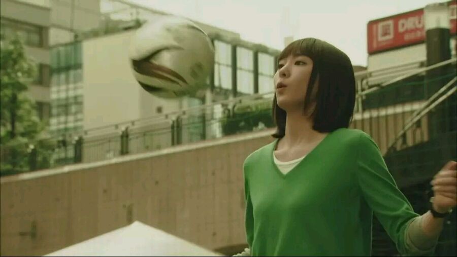 她还有头顶球的特技