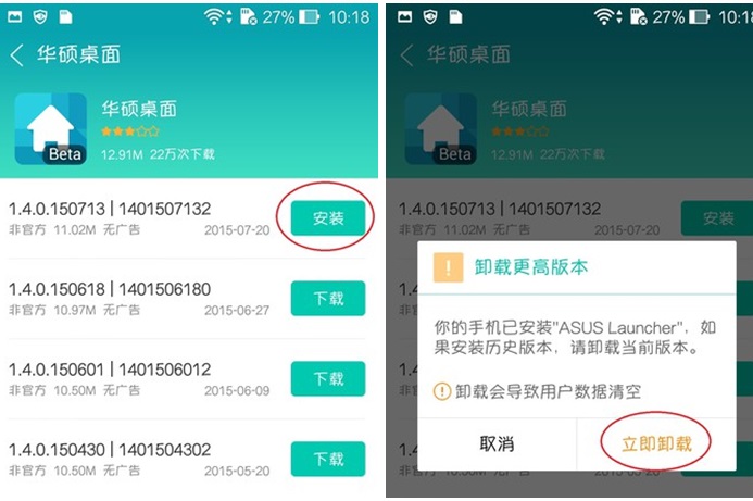 下载了老版本不给安装,说是没有root
