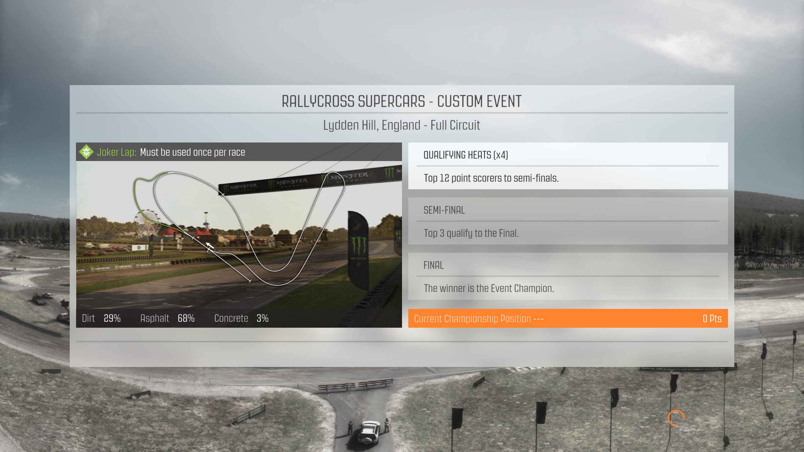 每个赛季的比赛分为初赛(qualifying heats),半决赛和决赛,初赛有四轮,四轮下来积分前12的进入半决赛,半决赛前三名进入决赛