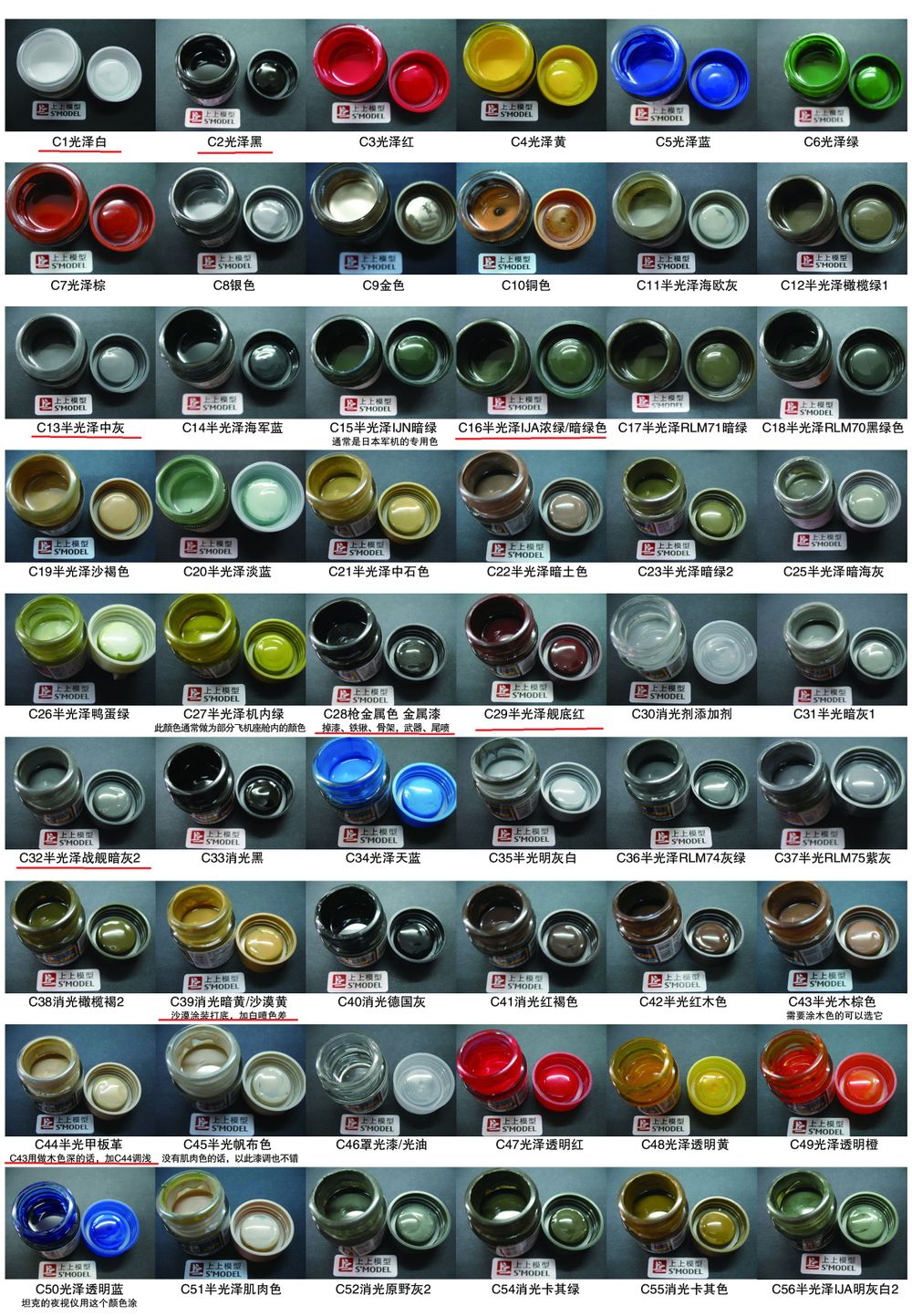 附中文版油漆表,但是个人不太推荐买MC系列,直接买SM或者GX好了,还有新出的UG系列也很好使