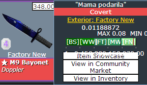 搭楼2200出一把崭新暗金P4 M9 磨损0.02