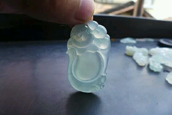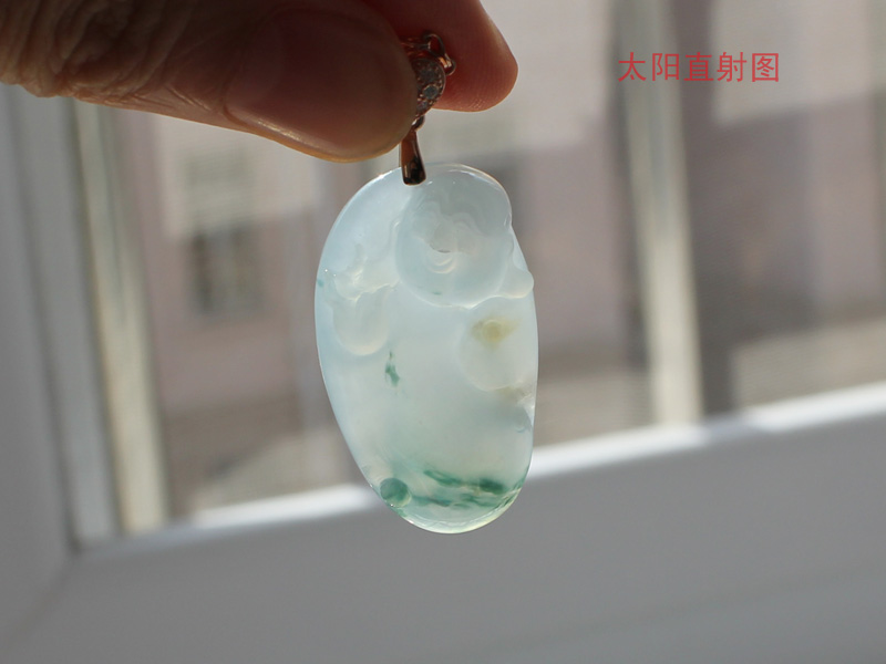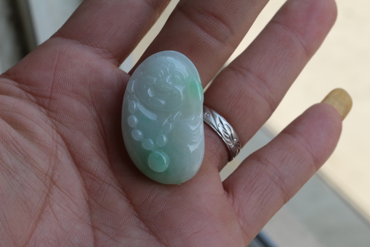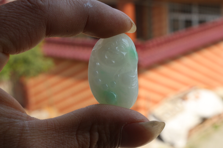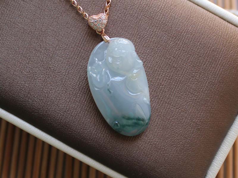 【翡翠名称】:白底青随型佛公吊坠(天然翡翠A货)