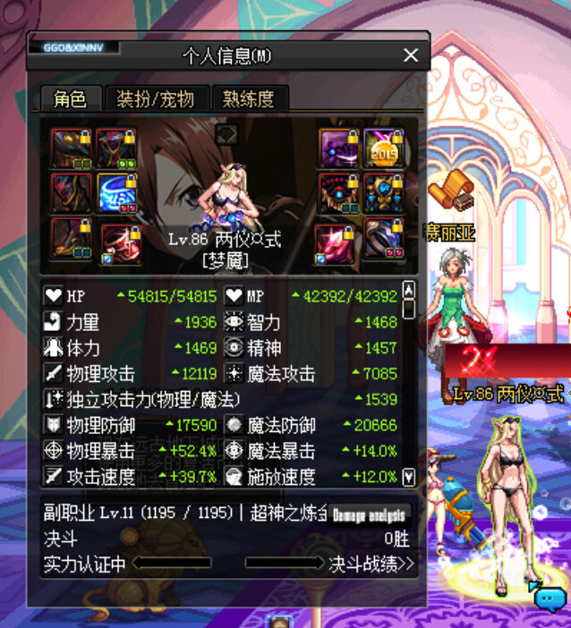 人穷武器没附魔,就头肩衣服裤子附魔了23物攻,徽章就2.2 1.1暴击,戒指和腰带都是10力量的