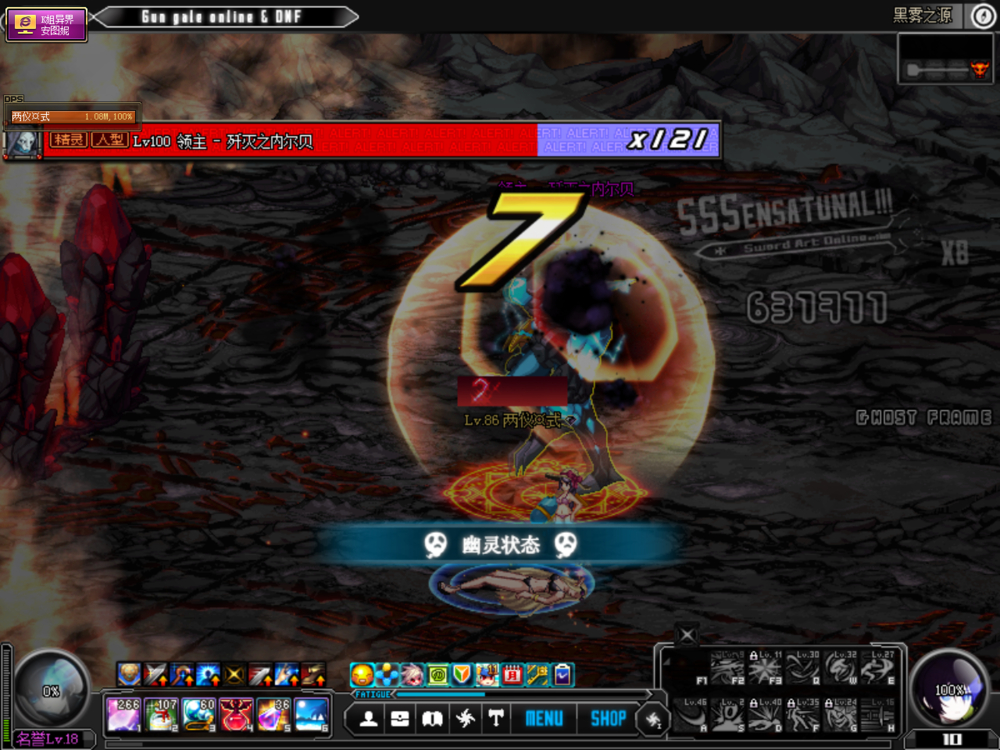 平A一下,特效转了7刀,伤害14.8W*7=103W,平均每秒50W