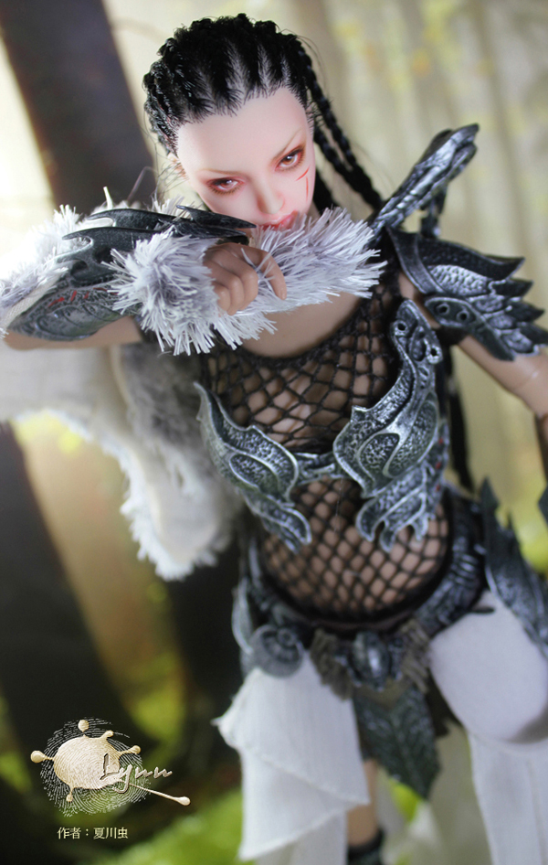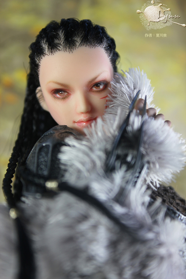 HT兵人女铁血身体,加了皮毛披肩,改原本塑料战裙,加了雪纺纱裙片。身体和头略有色差。单只脚关节略松。