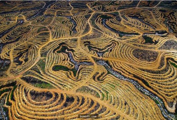 8. 印度尼西亚部分的森林被开垦成棕榈种植园。