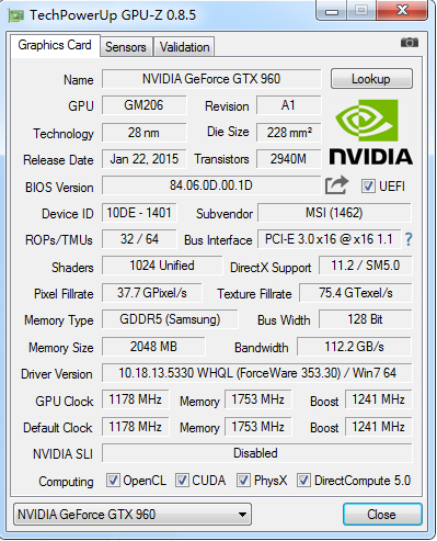 微星GTX960显卡求鉴定GPU-Z和GPU INFO